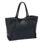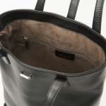 側面の縫い方を途中で変えてデザインのアクセントにしただけでなく、自立性も向上させた技アリの作品。厚みのある牛革ながらタッチが柔らかなのは、鞣しの「加脂」と「シボ出し」の工程を二回繰り返しているから。長めのハンドルは肩掛けが苦にならず、開口部は中央にあるスナップボタンでも留められる。W39×H31×D18cm