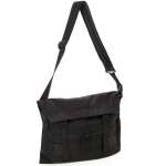 マチ幅を左右で変化させたアシンメトリー構造のUSAメイド。収納力を確保しつつ、肩掛け時のフィット感を向上させた。素材は500デニールのコーデュラナイロン。正面にウェビングが施され、スライドクリップで同社別売りの小物を装着可能だ。W36×H34×D8cm