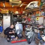 「もっと広いガレージを作ればよかったです」と笑いながら、今日も充実した表情で伊津美さんはたくさんのビンテージベスパに囲まれている。