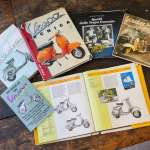 ▲歴代ベスパの詳細なスペックなどデータが詰まった「ベスパテクニカ」や写真集など、ガレージ内には関連資料が豊富に揃う