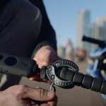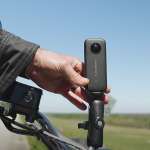 ▲ハンドルにマウントすれば、自撮りアングルなど迫力の走行シーンが撮影できる。自撮り棒が消せる(消える)のも魅力