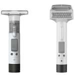 ミットタイプのマイクロファイバーで拭き取り、こびりついた汚れも集中的に掃除できる。蛇口やキッチンまわり、椅子の脚などの曲面もスイスイ汚れを落とせる。本体が小さいので移動もラクだ。