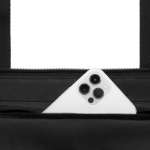 ▲フロントパネルにジップ付きの大型ポケットを搭載。内ポケットもあり小物を整理収納できる