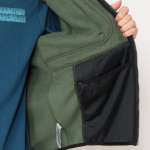 筆者が個人的に気に入ったのが、デザインと一体化した収納部分。両胸にはヒジと同様に、耐擦性に優れたシェル素材を配したジップポケット、腹部にカンガルー型ハンドポケット、さらに内側にメッシュポケットを完備。