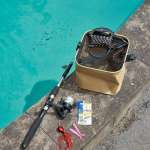 コンパクトに収納でき、上部のメッシュで魚の飛び出しを防止する。ロープとハンドル付きで、持ち運びが簡単。展開時のサイズはW21×D21×H19cm。