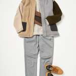 最近の定番カジュアルは、快適性のあるスポーツ要素をミックスしたスタイル。パーカにスウェットという、一見すると部屋着と変わらないようなスタイルも、ボアフリースを羽織ることでトレンドの着こなしになります(宇田川さん)