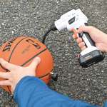 握りやすいソフトグリップタイプのハンドル型で、作業がしやすいコードレスタイプの電動空気入れ。最大圧力は約830kPaで、最大空気量は8L/分。設定した圧力に達すると空気の充填が自動で止まり、空気の入れすぎでの破裂や破損を防げる。重さ870gで持ち運びにも便利だ。