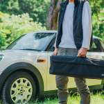 ▲ソフトキャリアに荷物を載せて固定し、車内に回したベルトを締めれば取り付け完了。工具も不要。積載可能幅は約55cmで、積載可能重量は10kg