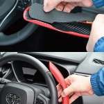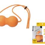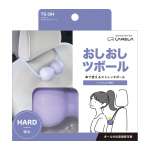 車内で使えるストレッチボール。自分の体を押し付ければ、肩、背中、腰のツボをほぐせる。硬めのハードタイプ(カラーはパープル)と柔らかめのソフトタイプ(カラーはオレンジ)を用意。使用環境は駐車中。運転中の使用は危険なので絶対に避けよう!