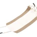 ▲ハンモックの足側はフロントシートに紐を通すだけの簡単取り付け。使わないときは小さく折りたたんで収納できる