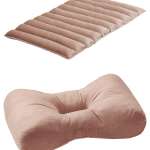 ▲体を安定させて寝心地を一段と高めるのがオプションのクッション(4400円)と枕(3080円)。どちらも超極細繊維のソフトマイクロファイバー生地を採用。滑らかで優しい肌ざわりを実現している。
