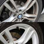 ▲上がbefore、下がafter。写真を見れば効果は一目瞭然。通常の洗車作業だけでは落ちなかったくすみがなくなり、まぶしい輝きがよみがえった