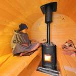 「薪ストーブはいろんなスペックの製品があるんですけど、基本的に暖房面積が広くて家全体を暖められるものなんです。でも、このバレルサウナは人が4人も入れば一杯になるほど小さな空間なので、薪ストーブが非常にパワフルな熱源になってくれるんです。さらに樽型の形状で熱が効率よく循環するので、温度の上昇も早いですね」