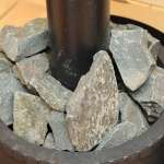 ▲サウナストーンに用いられる石は、密度が高く保温性・熱伝導率に優れた火成岩など。そこらで拾った石では高温に耐えきれず爆ぜてしまうので要注意