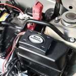 ▲本体はボンネット内の邪魔にならない場所にマジックテープで取り付け。LEDランプにより導通を確認できる