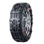独自開発の3点クイックロックでタイヤにフィット。クルマを動かすことなく簡単にタイヤに取り付けられる非金属タイヤチェーン。108本のスパイクピンが付いており、アイスバーンでも強力なグリップ力が得られる。