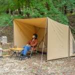サイドパネルを閉じることで、ベイカーテントのようなカタチに変身。雨風を防ぐ効果もあるので、天候にあわせたアレンジがオススメです。