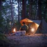 シンプルな形状ながら、サイドパネルの開閉次第でパップテントとベイカーテントになる「シンプルモード」のほか、ミニタープをキャノピーにしたり、焚き火時の陣幕にしたりと4種類のモードを使い分けられます。また火の粉があたっても燃え広がりにくいポリコットン生地を使用しているので、テントの近くでも焚き火が楽しめます。