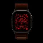 ▲ピーク輝度は2000ニト。Ultra専用の「ウェイファインダー」文字盤は、Digital Crownを回せば夜間でも見やすい赤色で表示される