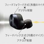 ▲本体外側のマイクを使うフィードフォワード方式と、内部のマイクを使うフィードバック方式を採用。デジタル制御とアナログ制御の組み合わせにより、優れたノイキャン性能を実現した