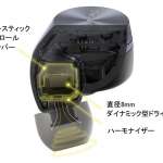 ▲直径8mmのダイナミック型ドライバーを搭載。ドライバー性能を最大限に引き出す、徹底的にこだわられた音響構造で、よりリアルな高音質を楽しめる