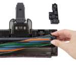 ▲ヘッドの構造が改善され、吸引力が向上している。さらに「からみレスブラシ」を新搭載し、髪の毛が回転ブラシにからみにくくなった
