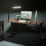 右側のコントロールレバーを使って、66〜126cmまでの高さのうち、天板を好きなポジションにセットできる。天板の高さはレバーに数値で表示される仕組みだ。デスク幅は950〜1350mmの間で4サイズをラインナップ。