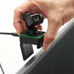 ▲底面のクリップ部を開き、外付けディスプレイ上部に引っ掛けるように設置。使用しない場合はカメラが下を向くので、“撮っていない”のがひと目で確認できる