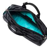 ▲光沢のある黒の表地に対し、裏地には色鮮やかなターコイズブルーを採用。収納物を視認しやすくして利便性を高めている