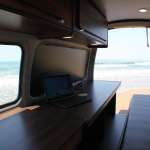 「オフィスということを考えれば、作業スペースとなるテーブルの高さや広さ、ベンチの座り心地も重要。これらが適切であれば長時間でも快適に仕事ができます。 あとはエンジンを切った状態でも電源が使えるように外部バッテリーが搭載されていることも大切な要素です」