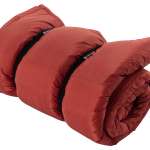 上下、つまり掛け布団と敷布団としてセパレートにしても使えるシュラフ。寝るだけでなく、どうしても暖房器具がない時は、掛け布団側を肩から羽織ってくるまると暖まれる。