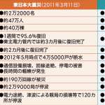 範囲が違うので一概には言えないが、電気・ガス・水道の中で比較的早く復旧したのが電気。しかしそれでも1週間かかっている。これまで家屋が損壊していなければ、災害用食糧や燃料の家庭備蓄は、緊急援助が届くまで3日分と言われてきた。しかしこのデータを見ると最低で3日、できれば7日分くらいは持っていたほうが良さそうだ。