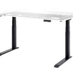 天板が上下することで“スタンディング”にも対応。ボタン式よりも素早く反応するタッチパネルを採用することで、よりスムーズに可動する。ケーブル配線は天板下のトレーに収納でき、床や足もとがすっきり使える。