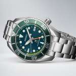 時差の異なる2つの国の時刻を表示する機能を、リューズ操作により時針のみを単独で動かすことができ、素早いタイムゾーン設定も可能です。ケースは耐久性と高級感を兼ね備えたステンレス製。カラバリは写真のグリーンに加え、ブラック、ペプシ(ブルー/レッド)の3色を展開。