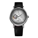 本モデルはその独創的なダイヤルを、深みのあるライトブルーで彩った新色。パワーリザーブ表示のオープンワークから覗く内部構造が奥行感を演出し“モノ好き”な男心をくすぐります。