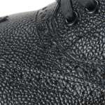 ブランドオリジナル設計のラウンドフォルムのラストを、紳士靴シルエットにモディファイしたラストがシャープでフォーマルな印象を与え、静岡産の蝋引きシューレースがキリリと引き締めます。