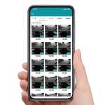 ▲専用アプリをインストールしたスマホと無線LAN接続を行えば、ワイヤレスで映像のダウンロードが可能。サムネイルからファイルを選べる