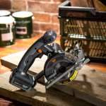 初心者が大きめの木材や合板に対して手鋸を使うと、まっすぐに切れないことがある。それに時間と労力もかかる。それを解消するのが電動丸鋸。使用可能な鋸刃は外形100〜110mm、内径20mmで最大切り込み深さは39mm。
