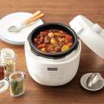 容量は2Lで、2人くらいまでの食事にピッタリなサイズ。8種類のメニュー切り替えが可能で、様々な料理を簡単に楽しめる。圧力炊飯でご飯を炊くこともできるうえ、予約や保温機能も搭載されているので便利に使える。