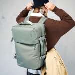 本体周囲のファスナーを開くことで容量を20%拡張できるエキスパンションシステムを搭載。また、フロントオープンで荷物に素早くアクセス可能。ボディには高性能な再生プラスチック素材を使用。容量39L。W40×H55×D20cm