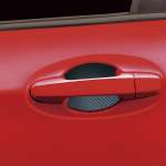 クルマを使用していると、ドアハンドルの後ろ側は爪などによる引っかき傷がいつの間にか増えているもの。あらかじめこのシートを貼って守るようにしよう。マグネットタイプなので貼り付けやすくて剥がすのもラク。カーボン調デザインでドレスアップ性も高い。