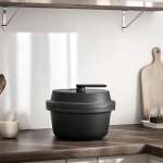 蒸気を逃しにくい構造と、ドリップ加工の内蓋によって食材のおいしさも栄養も多く残す無水調理を実現。食材をかきまぜるユニットや、温度と蒸気のセンサーによる繊細な火加減の調節によって、難しい調理もボタンを押して放っておくだけで完了する。公式メニューも豊富。