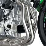 軽量なトレリスフレームなど、シャシーの基本構成はZX-25Rに近く、車体重量も5kgしか増えていない。3つのグレードが設定されるものの、大阪&東京のモーターサイクルショーに展示されたのは、レーシンググラフィックスを身にまといクイックシフターなどを装備し、フルアジャスタブルリヤショック付きの最上級仕様「RR」のみ。いずれも価格は未定で、今秋発売予定となっている。