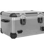 アドベンチャーヘルメット2個が余裕で入るXXLサイズのアルミ製トップケースは大型アドベンチャー用に開発されたものだが、ハンターカブにだってよく似合う! パニアケースを左右に追加装備することもでき、その姿は圧巻!! 世界一周にも誘われるロマンあふれる重厚感で、これぞ小さな巨人。サイズはW60×H32xD40cm。容量72L