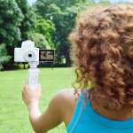 211g(※1)の軽量ボディと、レンズ側のボディ中央に操作ボタンを配置し、スマホで撮影しているようなスタイルで撮影可能。さらに自撮りに適した約19mm(※2)相当の超広角レンズと、高画質の動画の撮れる1インチCMOSセンサーを搭載。4K30Pによる高品質の動画撮影が楽しめる。美肌動画モードや14種類のカラーフィルター機能などの搭載も魅力。