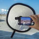 ▲銀色の面を被写体側にすると、簡易的なレフ板としても活用できる。被写体を明るく写したいときなどにとても重宝する