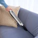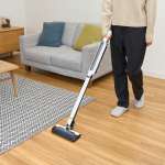 ▲使わない時にはスッキリと立て掛けておけるのもポイント。インテリアにマッチするデザインなので、リビングやダイニングに置いておきやすく、必要な時にサッと取り出して掃除できる