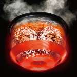 ▲内釜は純度99.9%の炭素材料を使い、職人が約100日間かけて仕上げた本炭釜。IHに瞬時に反応し、大熱量でムラなく炊き上げる