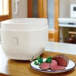 温度や時間を細かく設定できる温度調理機能を搭載。炊飯に加えて、ローストビーフや鶏ハム、ガトーショコラなどを作れる。蓄熱性の高い3層特厚銅釜を採用し、ご飯もふっくら美味しく炊ける。ホワイトとブラックの2色を用意。炊飯容量5.5合