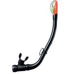 水中に潜ると弁が自動的に閉まる、ドライトップシステム付きのシュノーケル。水が入りにくいので初心者でも快適に使いこなせる。